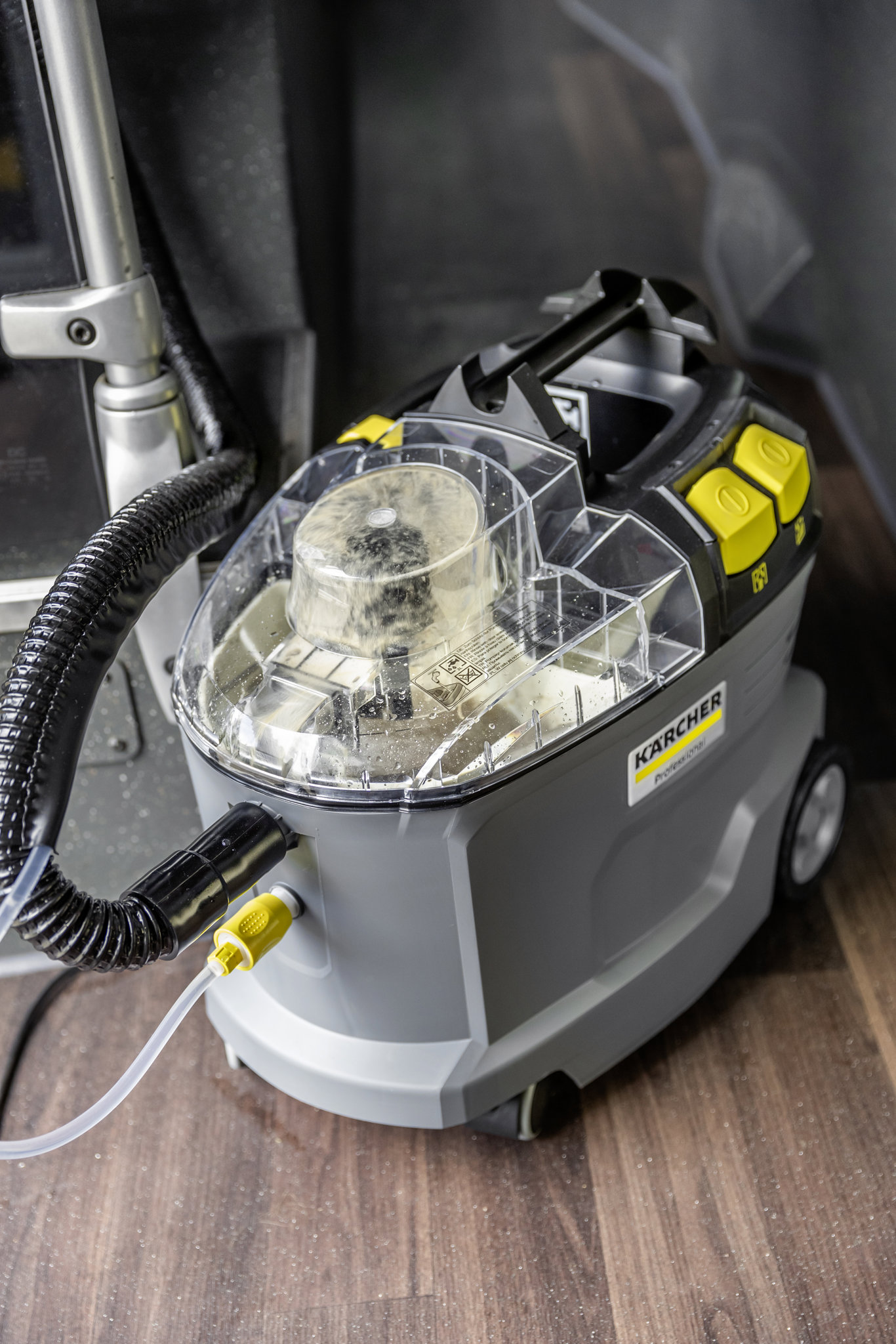 Der Kärcher Puzzi 8/1 Adv ist ein leistungsstarkes Sprühextraktionsgerät, das für eine hervorragende Reinigung textiler Oberflächen sorgt. Dank der sehr guten Rücksaugleistung trocknen Polster und Teppiche besonders schnell, sodass gereinigte Flächen rasch wieder genutzt werden können. Das Gerät eignet sich ideal für den professionellen Einsatz in Gebäudereinigung, Hotellerie, Gastronomie und Fahrzeuginnenreinigung.