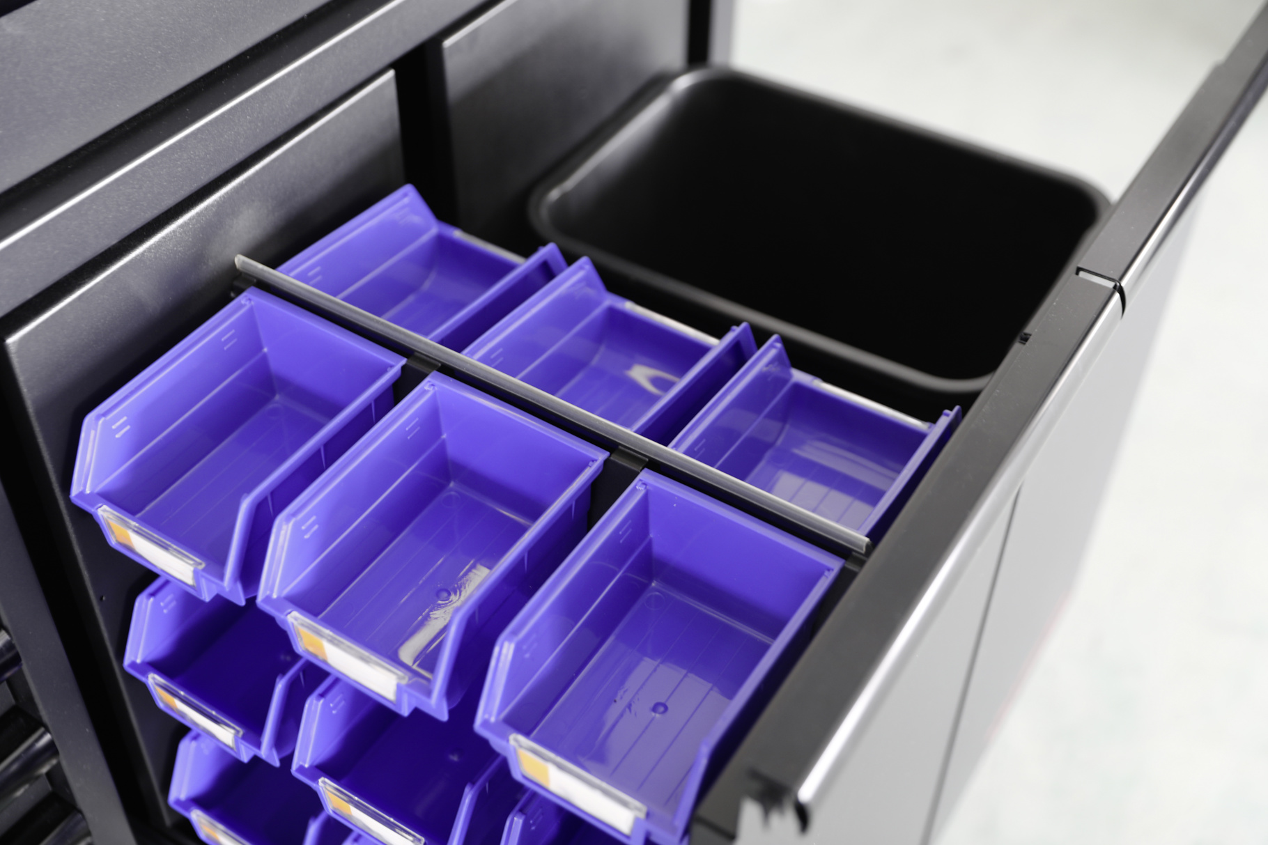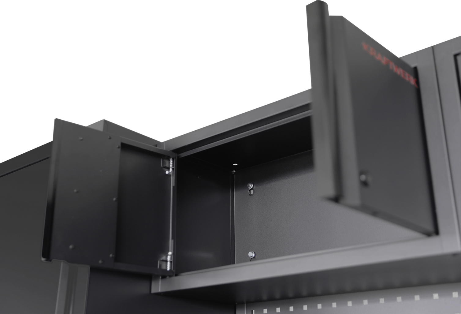 Die vier Unterschränke sind mit kugelgelagerten Schubladen in unterschiedlichen Höhen ausgestattet. Diese sorgen für eine übersichtliche Organisation deiner Werkzeuge und schnellen Zugriff im Arbeitsalltag. Für zusätzliche Sicherheit lassen sich die Schubladen zentral verriegeln oder auch einzeln abschliessen – so ist deine Ausrüstung jederzeit zuverlässig geschützt.
