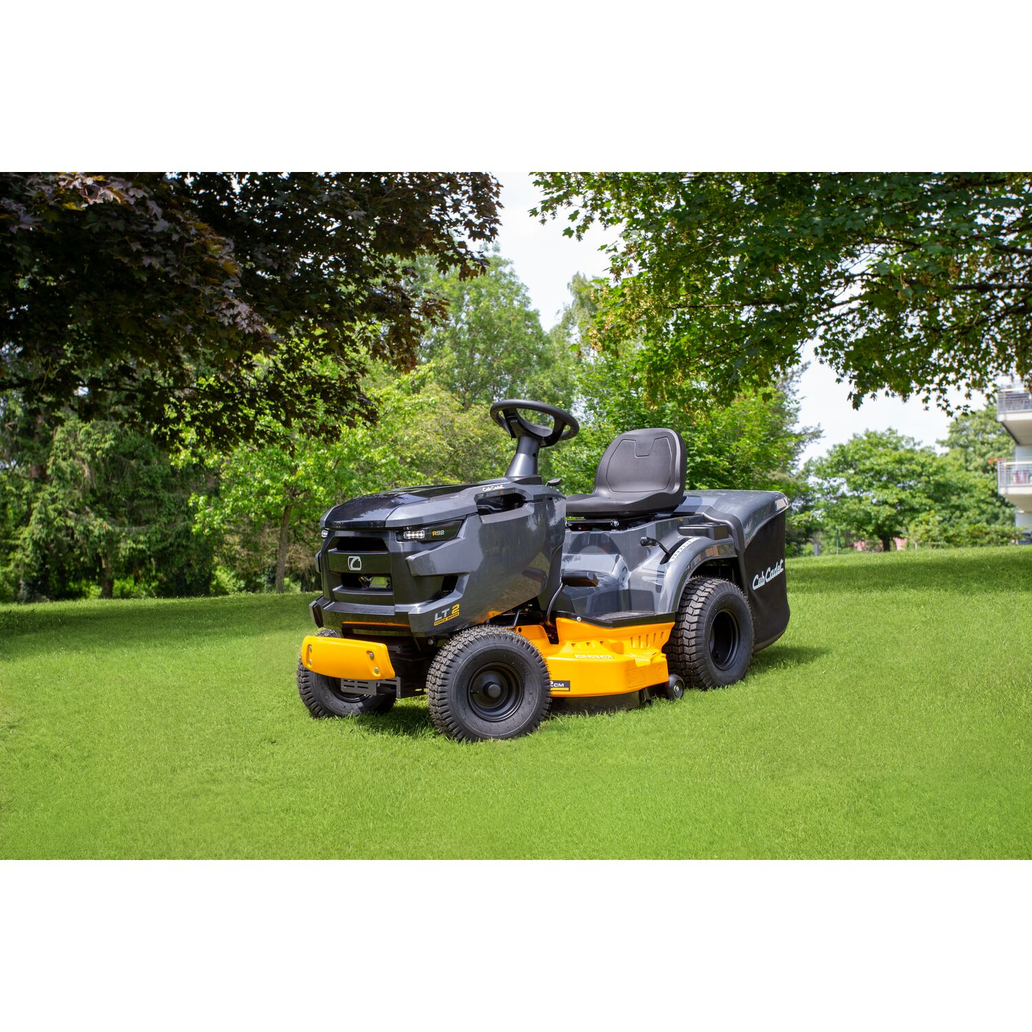 Wünschen Sie Premium Features für ein höheres Level an Power, Leistung und Komfort, dann setzen Sie sich ans Steuer der LT2-Serie. Zwei Beispiele machen das deutlich: Die 12-stufige Schnitthöhenverstellung bietet Ihnen mehr Auswahl für Ihre bevorzugte Halmhöhe. Und durch den gefederten Sitz mit hoher Rückenlehne arbeiten Sie auch bei langen Mähzeiten ganz entspannt.