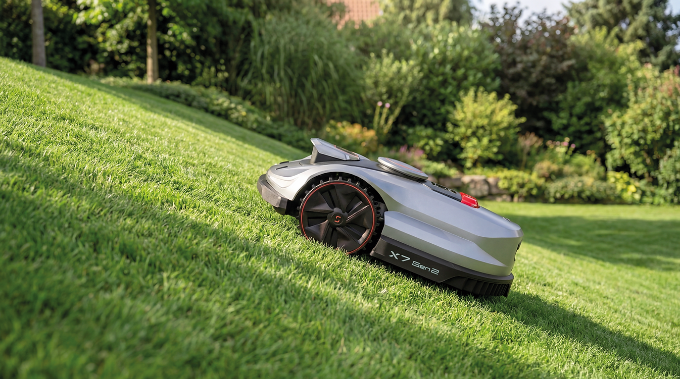 Mit Vision AI 2.0 ausgestattet erkennt die X Gen 2 Serie Hindernisse bei Tag und Nacht zuverlässig – darunter auch Trampoline oder Schaukeln – und gewährleistet ein sicheres, reibungsloses sowie stabiles Mähen.