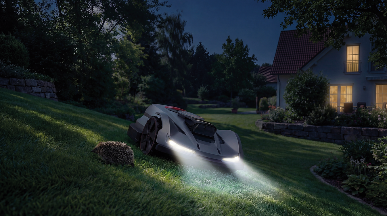 Ein neu entwickeltes binokulares Kamerasystem mit iToF-Technologie verbessert die Umgebungserkennung deutlich und sorgt für exakte Kartierung sowie stabile Navigation. Selbst in dicht bewachsenen Bereichen mit eingeschränktem nRTK-Signal gewährleistet VSLAM 2.0 ein zuverlässiges und unterbrechungsfreies Mähen.