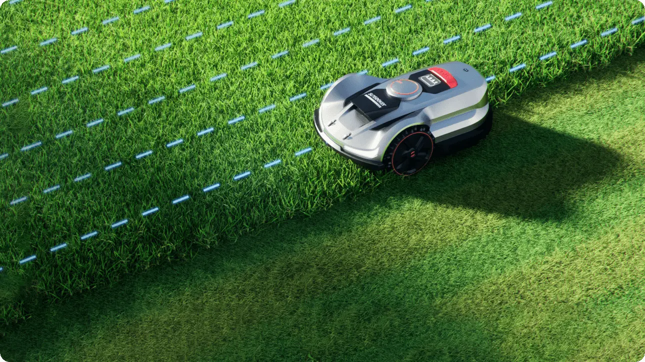 Im Modus „Effizientes Schneiden“ unterteilt der Mäher den Garten automatisch in optimal abgestimmte Zonen und berechnet für jede Zone die schnellste Route – für ein kürzeres, präziseres und insgesamt intelligenteres Mähergebnis.