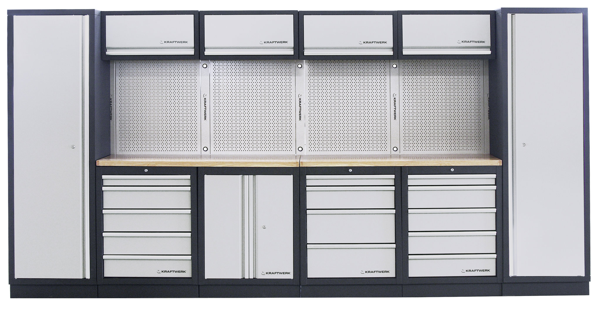 Die KRAFTWERK MOBILIO 6er Kombi bietet dir eine perfekte Mischung aus Stauraum, Flexibilität und Langlebigkeit. Die Module sind freistehend und können beliebig aufgestellt oder mit weiteren Elementen erweitert werden, ideal für grosse Werkstätten oder kompakte Arbeitsbereiche.