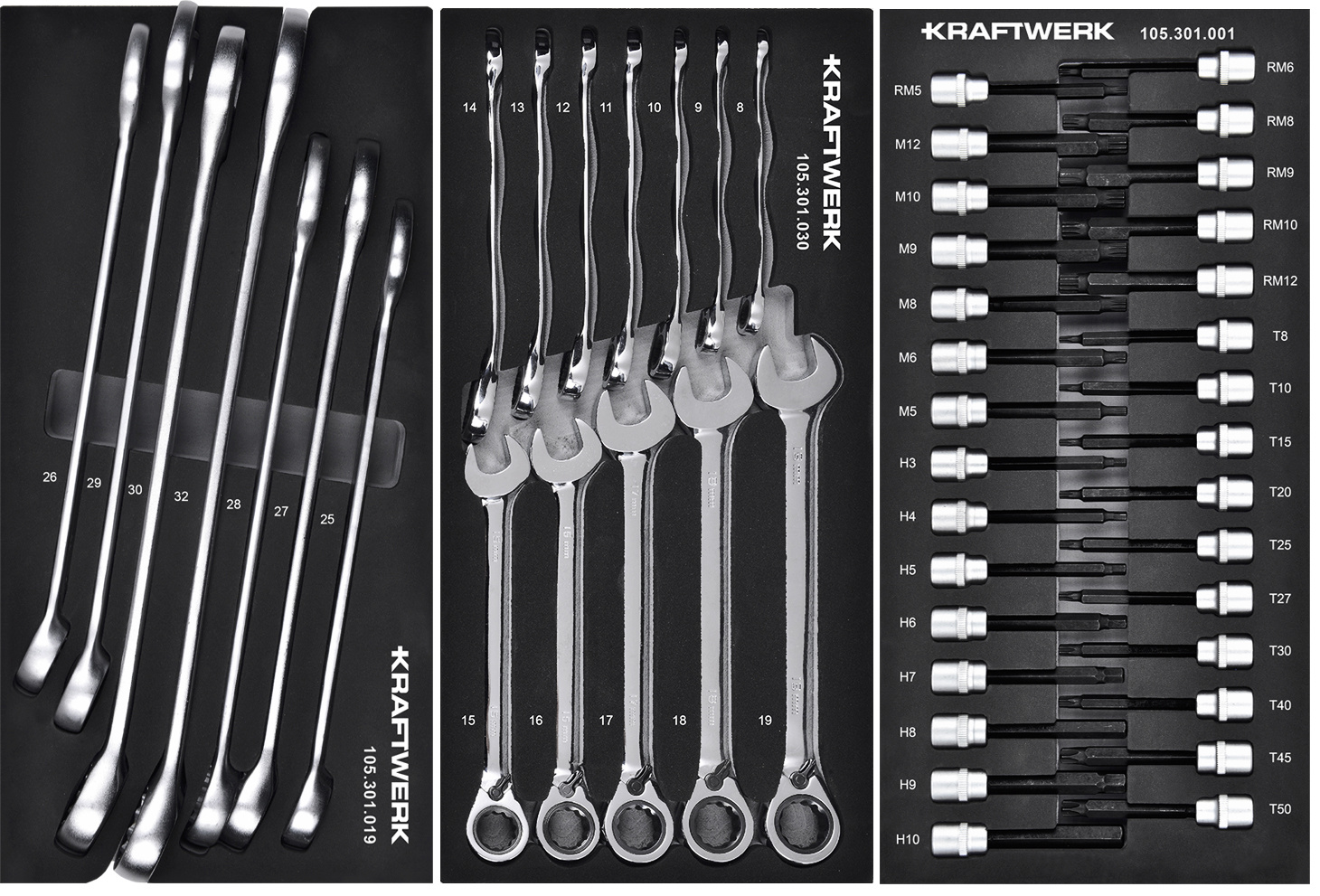• Ratschen-Ring-Maulschlüssel: 8 - 9 - 10 - 11 - 12 - 13 - 14 - 15 - 16 - 17 - 18 - 19 mm